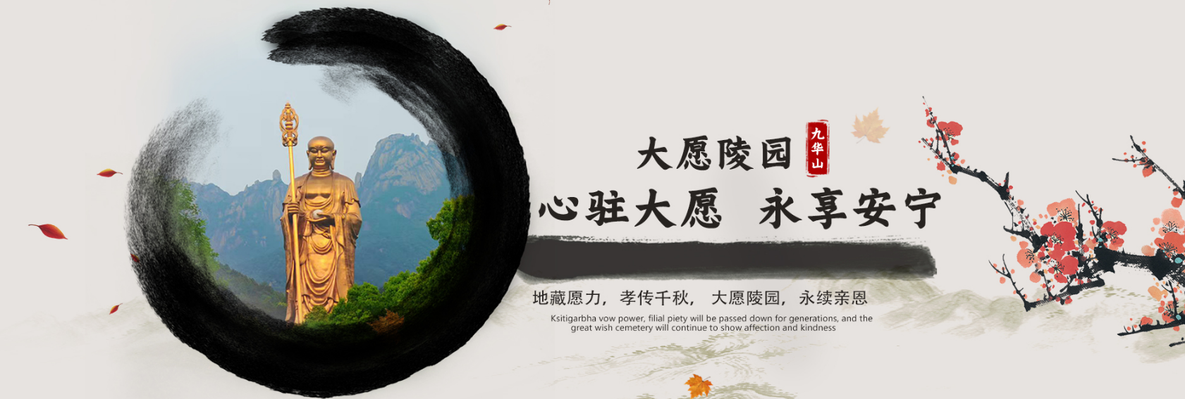 九华山大愿陵园占地200亩,斥资2亿,是九华山风景区一家安徽省民政厅批准的多元化服务公墓,可建福位4-5万位,立足社会民生,面向全国,响应国家殡葬改革号召,在传统墓穴的基础上,更有新型艺术墓区、名人文化墓区,高僧大德塔林区等,同时进一步引领生态殡葬改革风向标,开发节地环保的新型殡葬业态:亲情林、树葬、花坛、草坪葬、壁葬等,移风易俗,建设线上线下祭祀平台,建立家谱族谱、云上宗祠,线上祭祀系统,以中华民族慎终追远的儒释道传统礼仪与新型祭祀方式结合,融入文化、艺术、绿色、环保、人文、科技、互联网+、公益的全面转